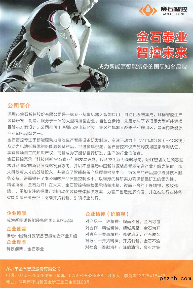 深圳市金石智控股份有限公司 新能源智能PACK 智能拆解非標定制 非標自動化設備_自動化生產線_機器人應用產品 深圳電池展點擊:1603 查看原圖![]() ![]() ![]() 深圳市金石智控股份有限公司
