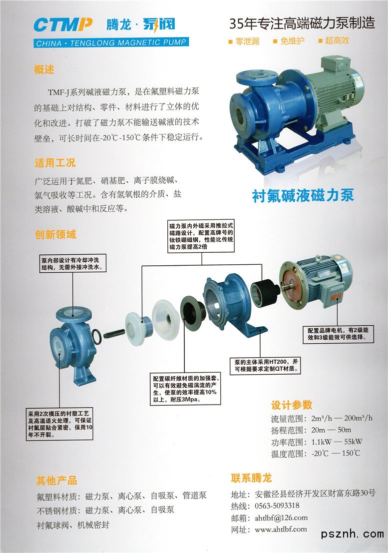 | 經營范圍: | 氟塑料(合金)磁力泵、離心泵、液下泵、砂槳泵、自吸泵、氟塑料閥門、襯氟管道生產、銷售;普通塑料及不銹鋼為基材的磁力泵、離心泵、砂槳泵生產、銷售。 | ||