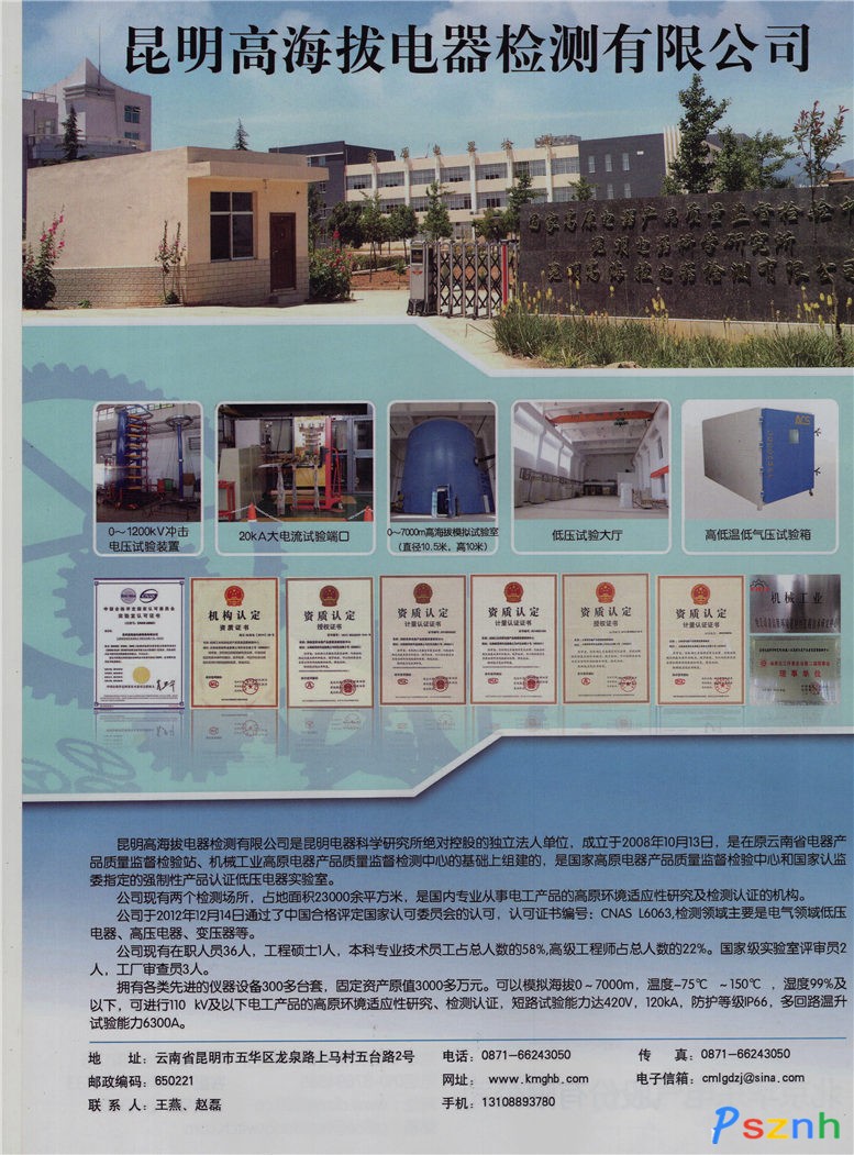 | 公司名稱: | 昆明高海拔電器檢測(cè)有限公司 | ||