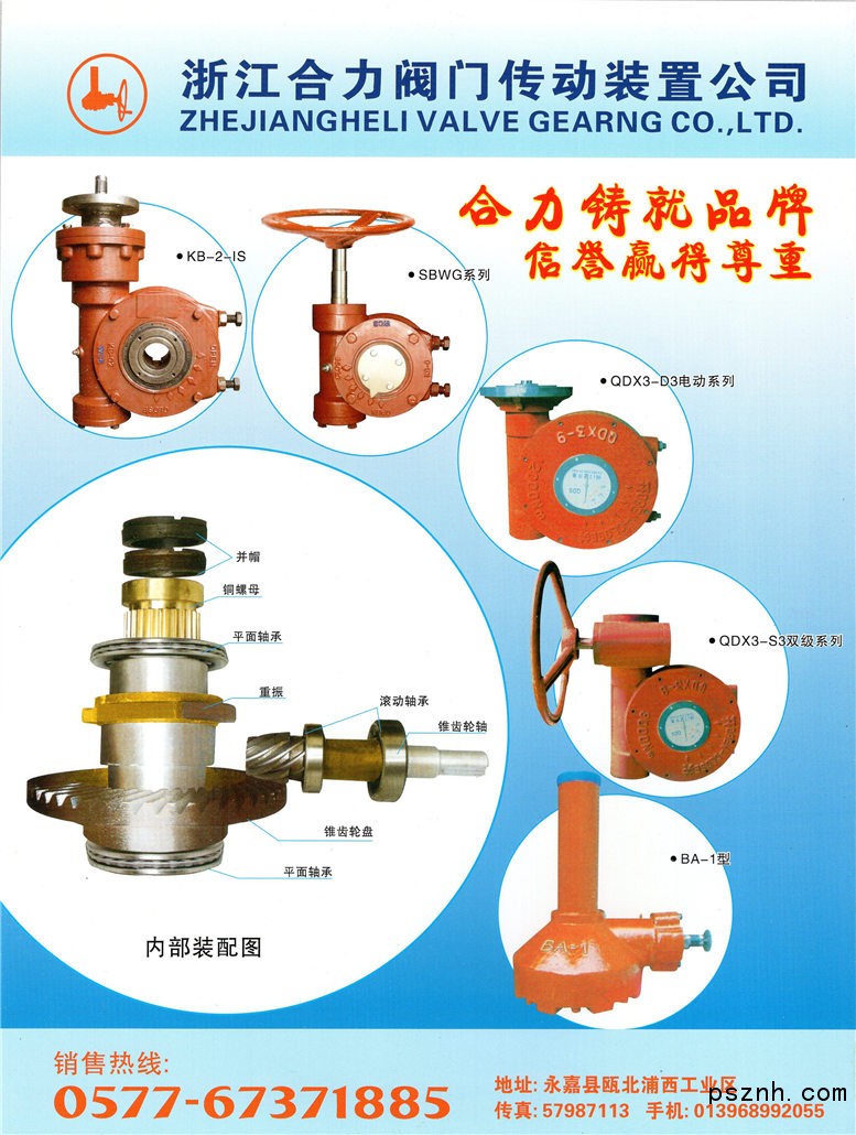 浙江合力閥門有限公司永嘉傳動裝置分公司 閥門蝸輪箱 BA系列美標弧齒輪點擊:619 查看原圖![]() ![]() ![]() 地址: 浙江省溫州三橋東歐工業區