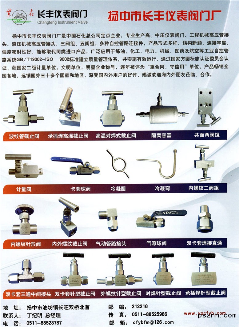 液壓機械高壓管接頭_三閥組_五閥組-揚中市長豐儀表閥門廠點擊:979 查看原圖![]() ![]() ![]() 地 址: 揚中市油坊鎮長旺雙橋北首 郵 編: 212216