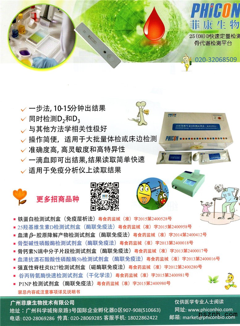 廣州菲康生物技術有限公司 VD檢測 骨代謝檢測 骨關節炎檢測 自身免疫檢測點擊:686 查看原圖![]() ![]() ![]() 地址:廣州科學城掬泉路3號國際企業孵化器D區907-908(510663)