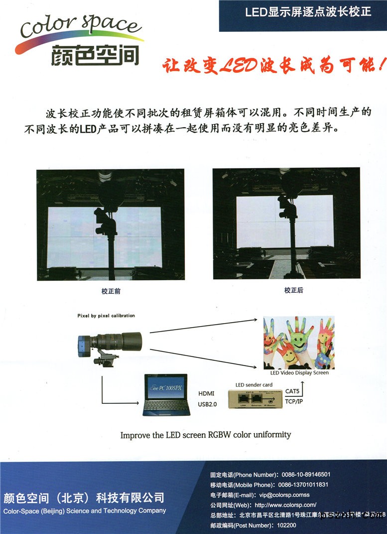 顏色空間(北京)科技有限公司 LED顯示屏校正設備點擊:602 查看原圖![]() ![]() ![]() 顏色空間(北京)科技有限公司
