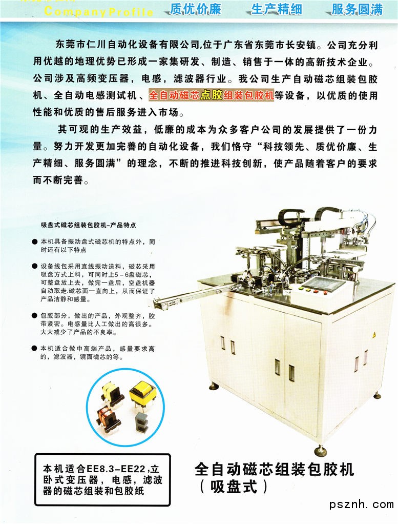 東莞市仁川自動化設備有限公司 全自動磁芯包膠機 半自動膠布機 全自動測試機點擊:491 查看原圖![]() ![]() ![]() 公司地址: