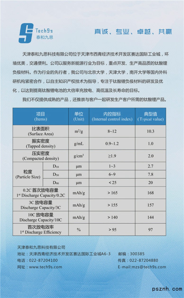 天津泰和九思科技有限公司 電池及其材料 鈦酸鋰負極材料 鈦酸鋰電池 新能源 深圳電池展點擊:1402 查看原圖![]() ![]() ![]() 地址:天津市西青經濟開發區賽達國際工業城A6-3
