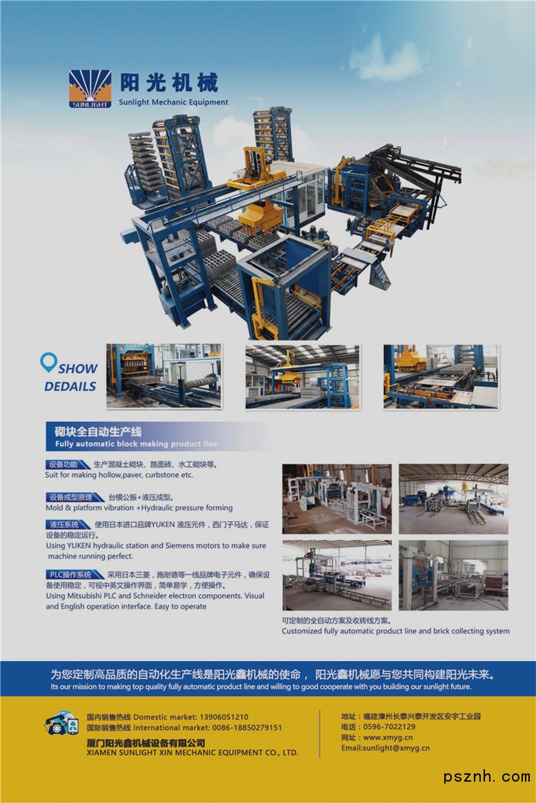廈門陽光鑫機械設備有限公司 全自動生產線解決方案 混凝土砌塊成型機 全自動收磚線點擊:548 查看原圖![]() ![]() ![]() 廈門陽光機械設備有限公司