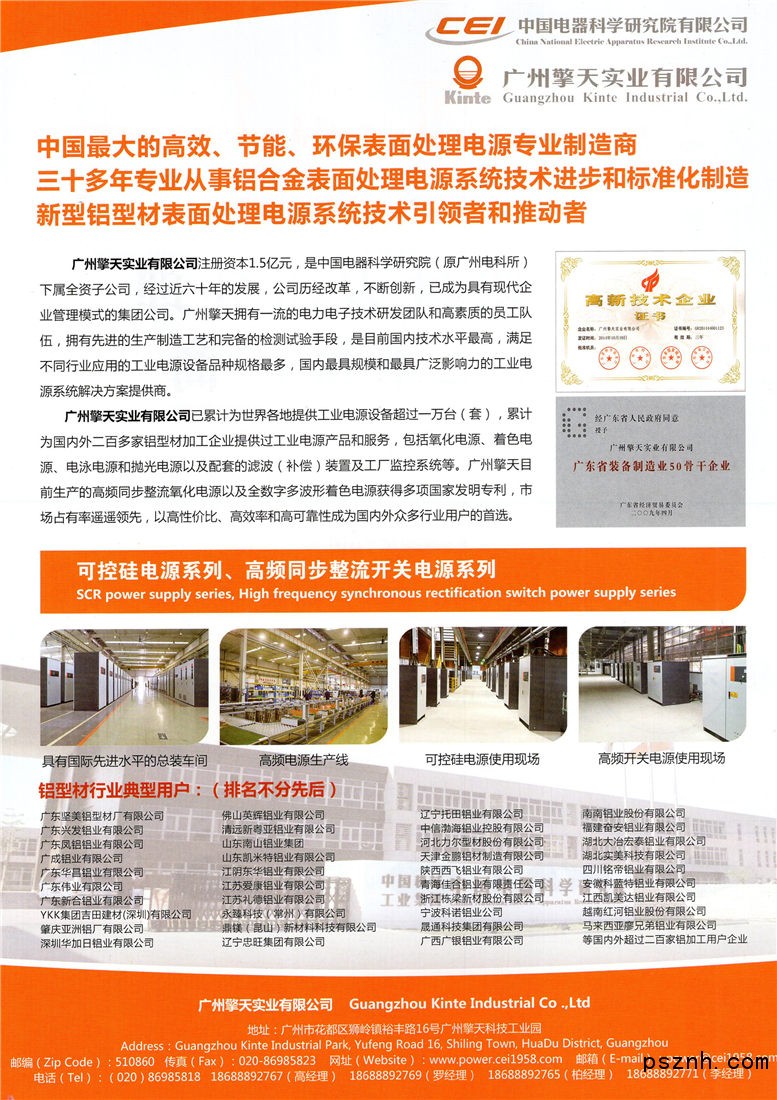 廣州擎天實業(yè)有限公司 鋁合金型材表面處理電源_電子鋁箔腐蝕化成電源_電鍍電源點擊:734 查看原圖![]() ![]() ![]() 廣州擎天實業(yè)有限公司