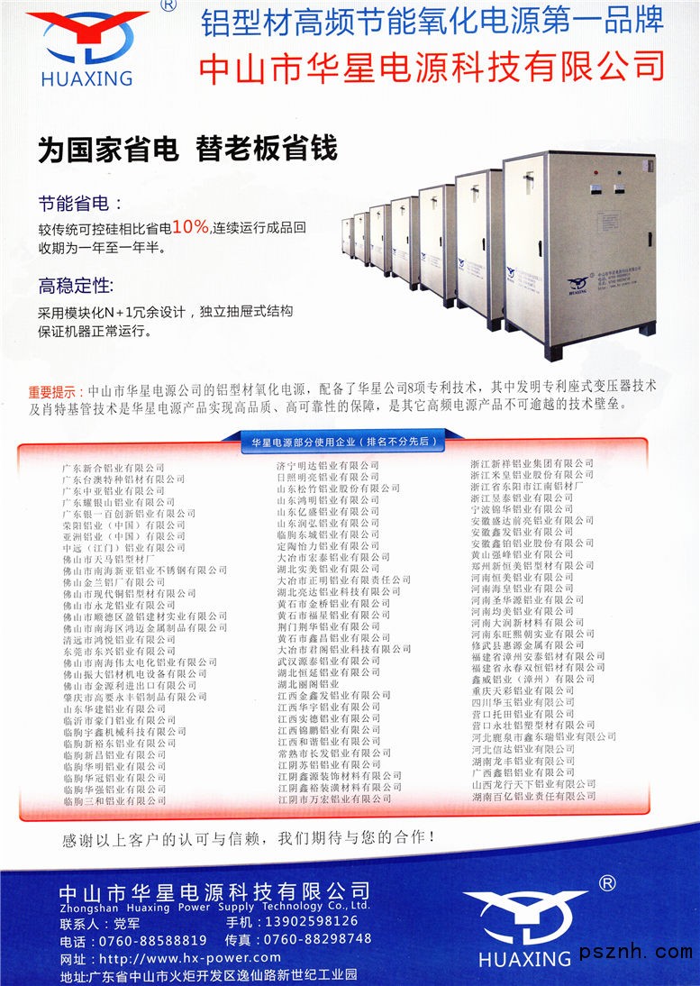 中山市華星電源科技有限公司 高頻鋁氧化電源_高頻電鍍電源_高頻電解電源點擊:605 查看原圖![]() ![]() ![]() 佛山 中山市中山火炬開發區岐濠路106號D棟//深圳辦事處