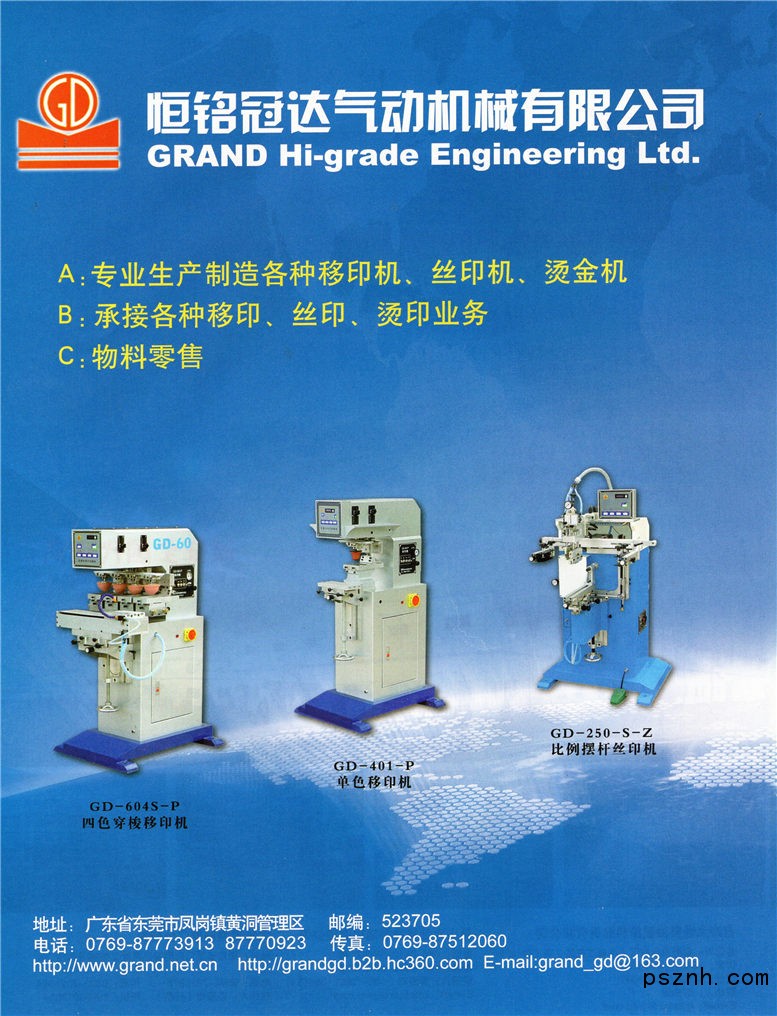 東莞市恒銘冠達(dá)氣動(dòng)機(jī)械有限公司 移印機(jī) 絲印機(jī) 燙金機(jī)點(diǎn)擊:522 查看原圖![]() ![]() ![]() 地址:廣東東莞鳳崗黃洞管理區(qū) 電話:(0769)87773913 傳真:87512060 郵編:523705 E-mail:grand@vip.sina.com |