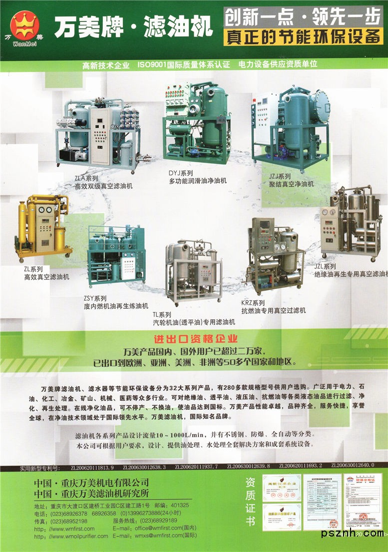 重慶萬美機電有限公司 潤滑油濾油機 透平油濾油機 變壓器油濾油機點擊:390 查看原圖![]() ![]() ![]() 萬美濾油機制造基地:重慶市大渡口區建橋工業園C區建工路(1號)