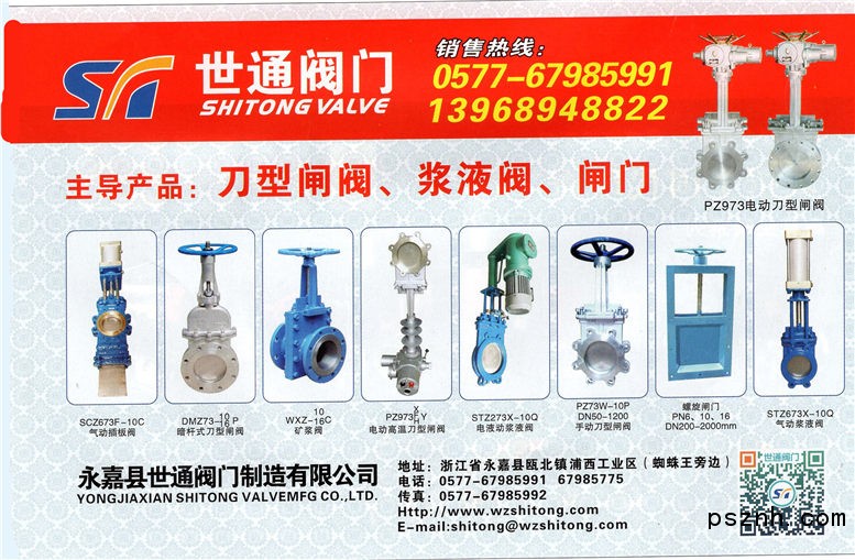永嘉縣世通閥門制造有限公司 漿液閥 排渣閥 刀型閘閥點擊:592 查看原圖![]() ![]() ![]() 永嘉縣世通閥門制造有限公司