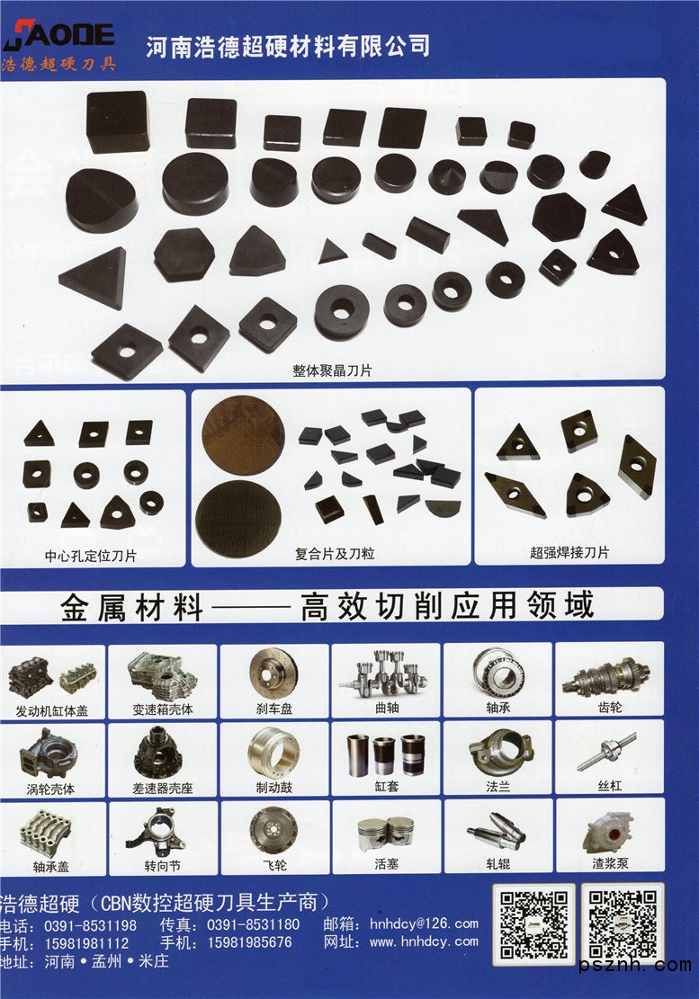 河南浩德超硬材料有限公司 立方氮化硼整體聚晶刀具片_立方氮化硼復合刀具片_金剛石復合刀具片點擊:643 查看原圖![]() ![]() ![]() 郵箱:Hnhdcy@126.com