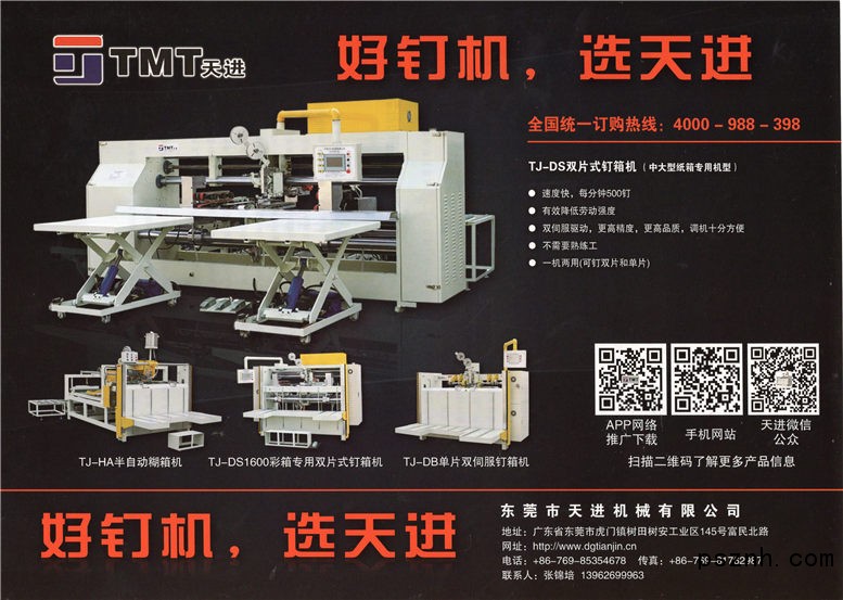東莞市天進機械有限公司 瓦楞紙箱后道加工設備點擊:332 查看原圖![]() ![]() ![]() 全國服務電話:4-000-988-398