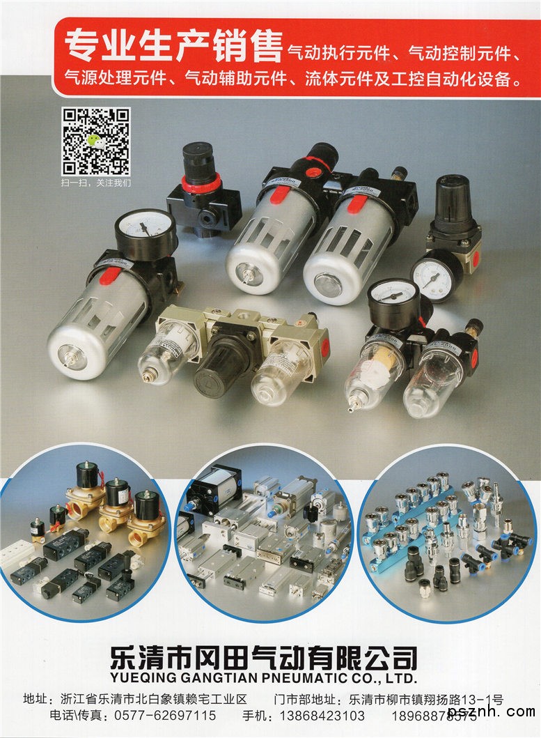 | 經(jīng)營范圍: | 氣動元件、氣管、電磁閥、氣源處理件、氣動接頭、氣缸、氣動工具及配件制造、加工、銷售。 | ||