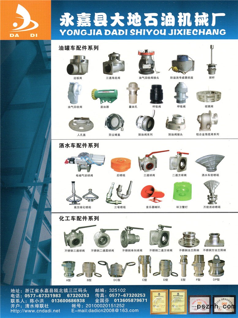 永嘉縣大地石油機械廠 油罐車配件 灑水車配件 海底閥 人孔蓋點擊:625 查看原圖![]() ![]() ![]() 公司名稱: 永嘉縣大地石油機械廠