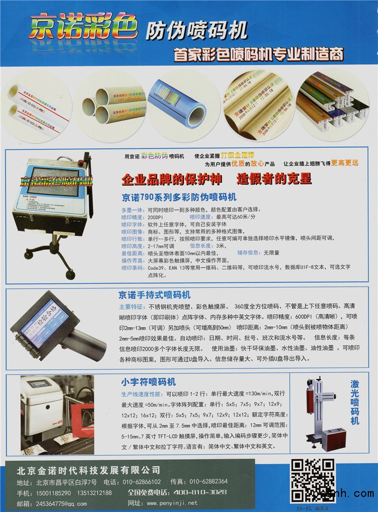 北京金諾時代科技發展有限公司 高解析噴碼機 小字符噴碼機 手持式噴碼機點擊:329 查看原圖![]() ![]() ![]() 聯系人:房娜娜