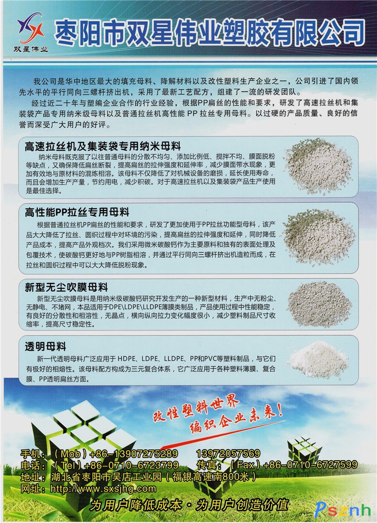 • 公司名稱: 棗陽市雙星偉業(yè)塑膠有限公司