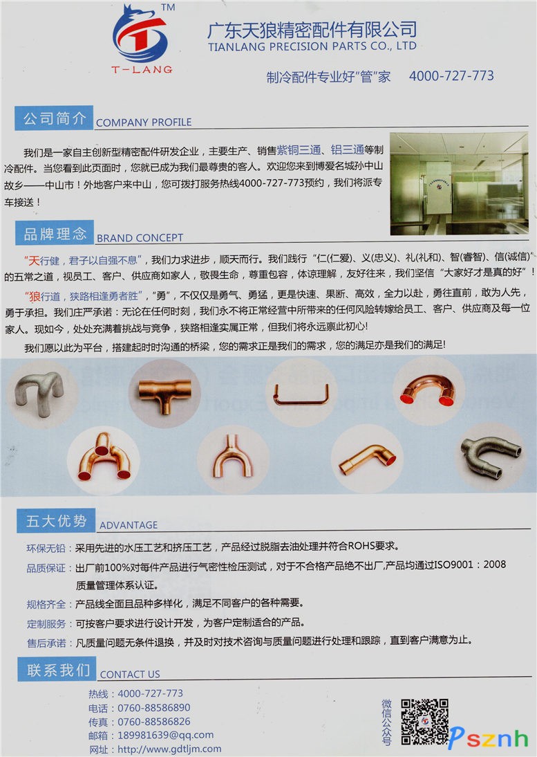 廣東天狼精密配件有限公司 紫銅三通管件 制冷配件 不銹鋼盤管點擊:1744 查看原圖![]() ![]() ![]() 全國服務熱線:4000-727-773