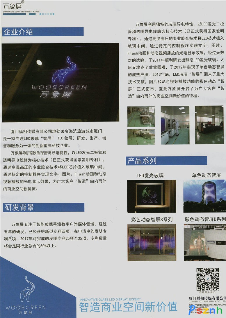 廈門福相傳媒有限公司 萬象智屏 彩色動態智屏 單色動態智屏 LED發光玻璃點擊:706 查看原圖![]() ![]() ![]() 電話: 4006022727