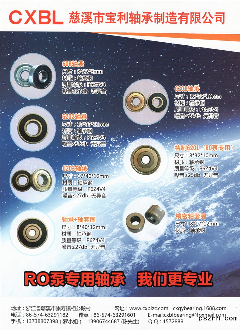 傳 真:86 0574 63291601 地 址:中國 浙江 慈溪市 慈溪市崇壽鎮相公殿殿北261號 郵 編:315334 公司主頁: http://cxblzc.com https://cxqybearing.1688.com |