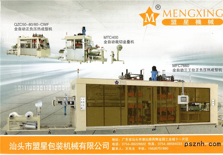 汕頭市盟星包裝機械有限公司 QZC50-80/120-CWF全自動正負壓成型機 MTC400全伺服自動裁切機MTC400全伺服自動裁切機點擊:1434 查看原圖![]() ![]() ![]() 廠址:廣東省汕頭市潮汕路西側(cè)金園工業(yè)城十一片區(qū)
