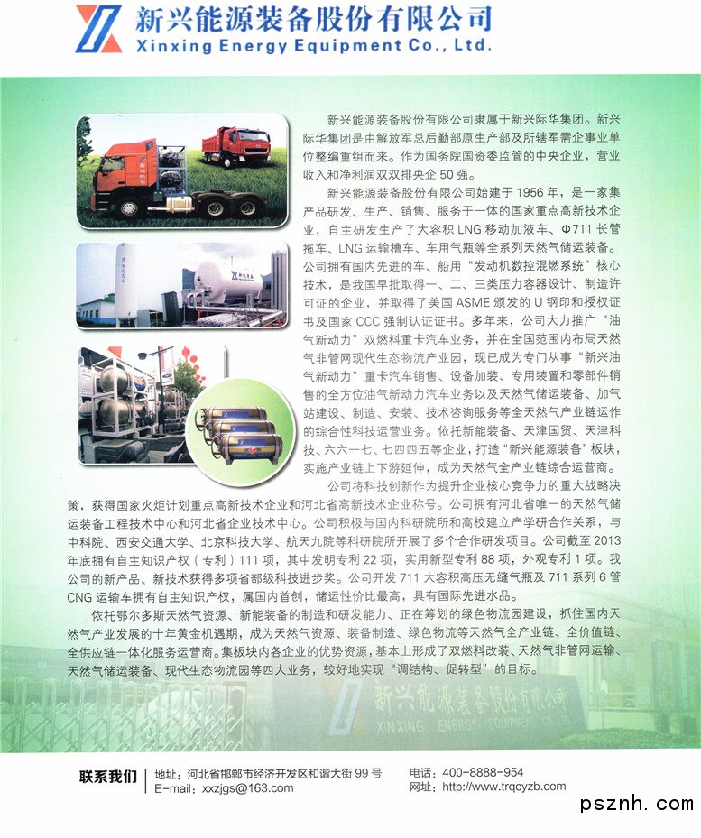 新興能源裝備股份有限公司 LNG儲運裝備 車用CNG LNG氣瓶 Φ711-6管改進液壓長管拖車點擊:643 查看原圖![]() ![]() ![]() 新興能源裝備股份有限公司