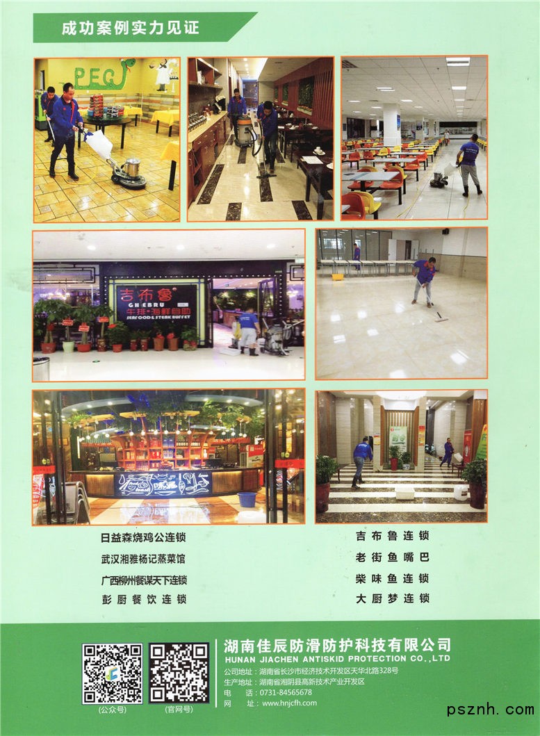 湖南佳辰防滑防護科技有限公司 家庭裝防滑專用劑 工程裝防滑專用劑 特殊材質防滑 薄涂耐磨地坪系統點擊:640 查看原圖![]() ![]() ![]() 全球招商加盟、防滑項目施工: