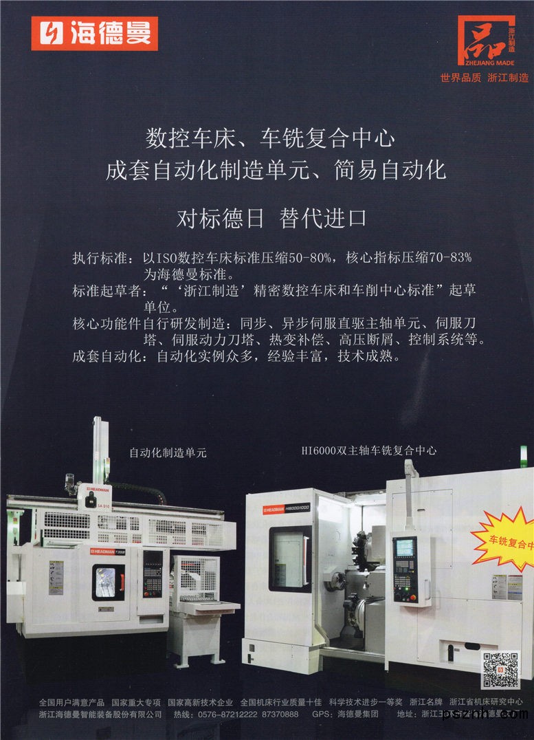 浙江海德曼智能裝備股份有限公司 成套自動化制造單元_柔性生產線_普及型數控車床點擊:522 查看原圖![]() ![]() ![]() 浙江海德曼智能裝備股份有限公司