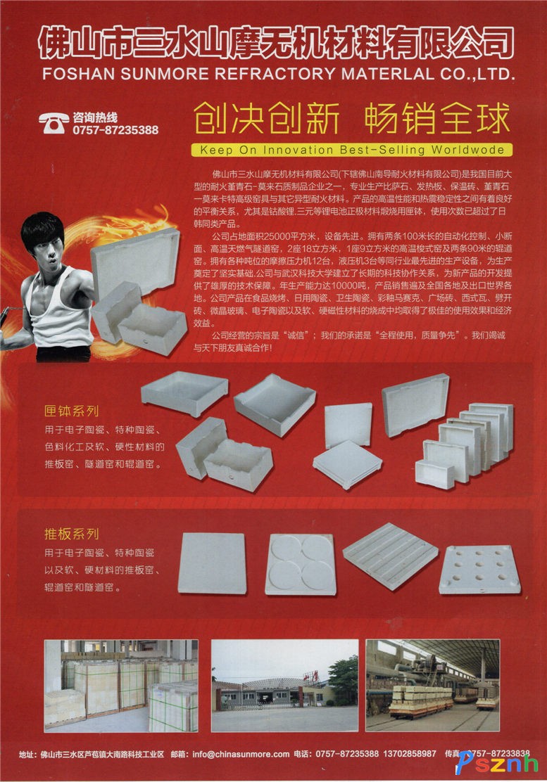 佛山市三水山摩無機材料有限公司 耐火材料 比薩石 發熱板 保溫磚 堇青石 莫來卡特高級窯具 其它異型耐火材料 深圳電池展點擊:2547 查看原圖![]() ![]() ![]() 佛山市山摩無機材料有限公司