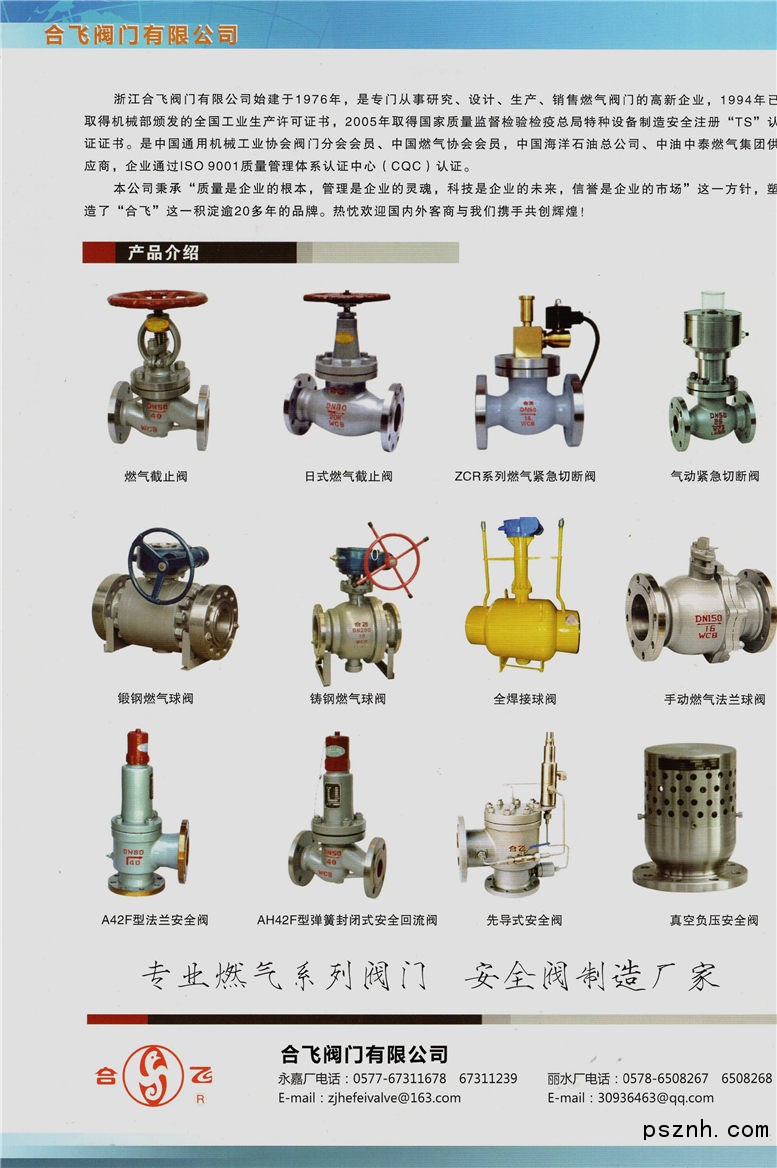 浙江合飛閥門有限公司 燃氣閥 安全閥 球閥 截止閥點擊:1119 查看原圖![]() ![]() ![]() 浙江合飛閥門有限公司聯系電話:0577-67311678傳真:0577-67319814網址:http://www.hefeivalve.com聯系郵箱: zjhefeivalve@163.com QQ: 聯系地址:浙江省永嘉甌北鎮三橋工業區