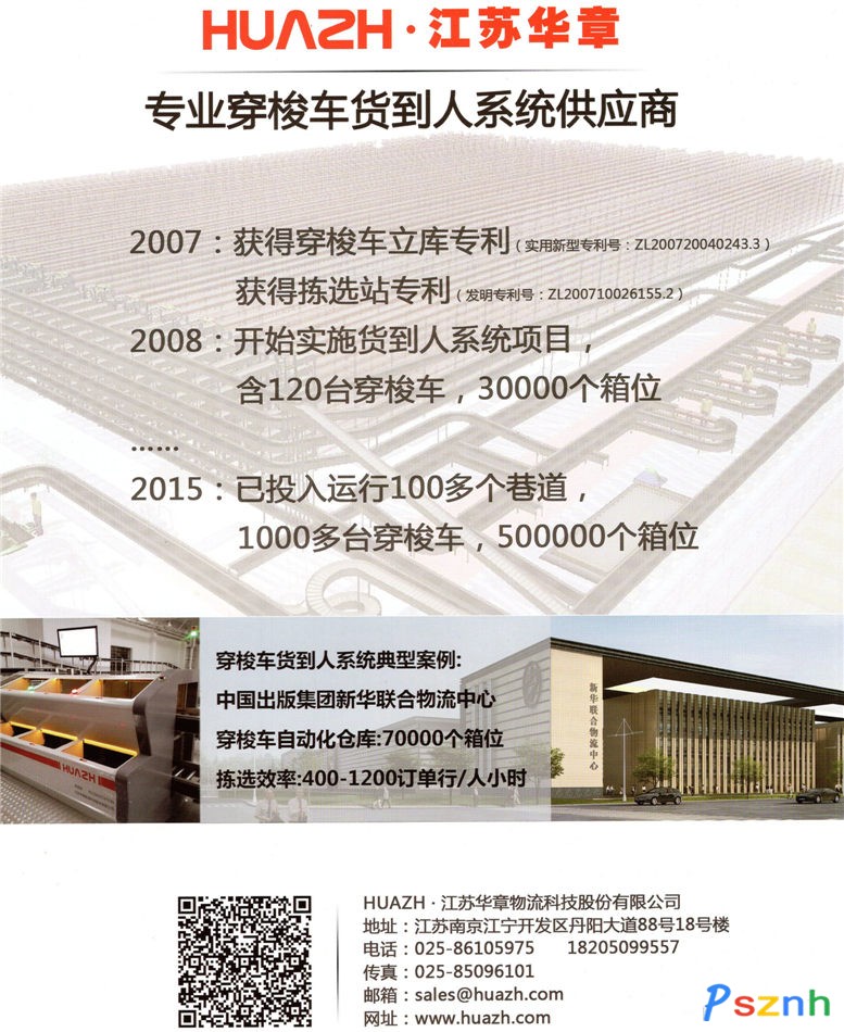 江蘇華章物流科技股份有限公司_智能倉儲_輸送機系統_托盤和箱式自動化存儲系統_半自動化和全自動化撿貨系統點擊:1512 查看原圖![]() ![]() ![]() 地址:江蘇省南京江寧經濟技術開發區丹陽大道88號18號樓