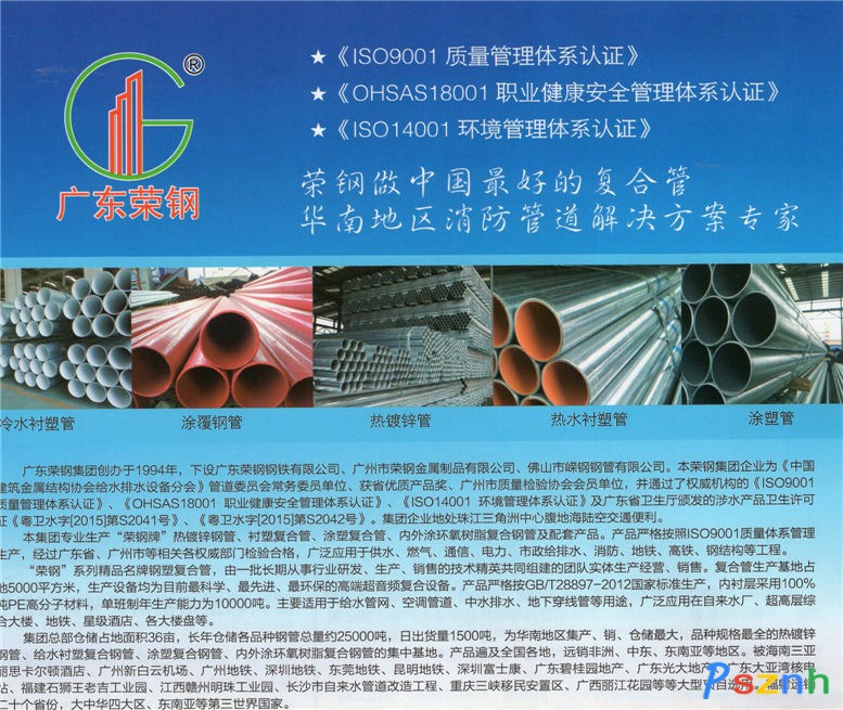 廣東榮鋼管道科技有限公司 _熱鍍鋅鋼管_給水襯塑復合鋼管_涂塑復合鋼管_內外涂環氧樹脂復合鋼管點擊:2411 查看原圖![]() ![]() ![]() 地址:廣東省佛山市南海區雄星工業路南海管業城B區