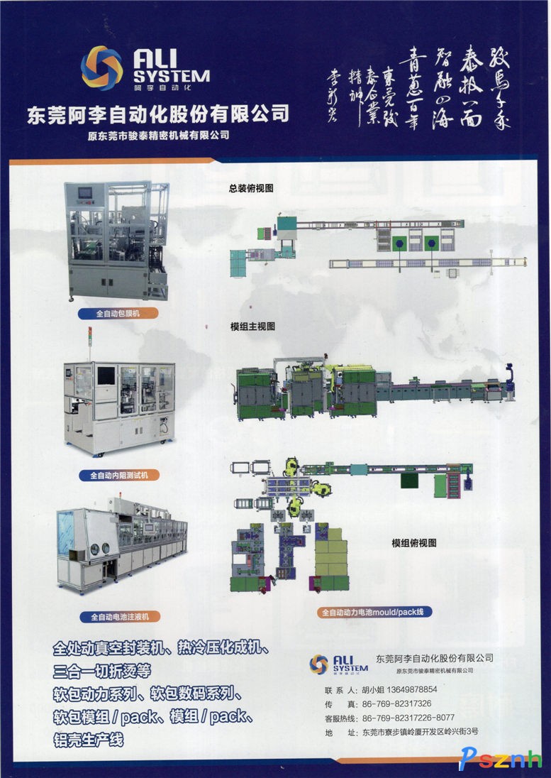 東莞阿李自動化股份有限公司_全自動切、折、燙成型機保險絲_激光焊接機_電芯頭部貼膠機_全自動軟包裝電池氣密性測漏機_全自動軟包裝_電池夾具烘烤成型機點擊:2171 查看原圖![]() ![]() ![]() 東莞阿李自動化股份有限公司