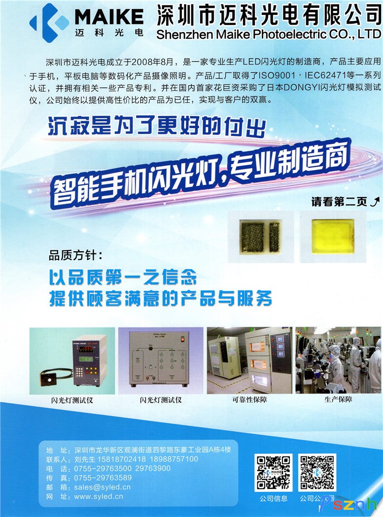 深圳市邁科光電有限公司 LED閃光燈 醫療應用 消費類電子產品