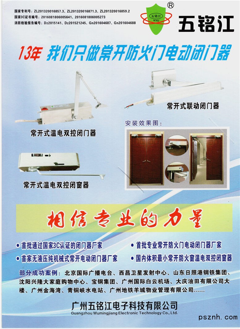 | 經(jīng)營(yíng)范圍: | 研發(fā)、銷售:消防器材、防火門窗、閉門器、防火門監(jiān)控系統(tǒng)、五金塑料制品(依法須經(jīng)批準(zhǔn)的項(xiàng)目,經(jīng)相關(guān)部門批準(zhǔn)后方可開展經(jīng)營(yíng)活動(dòng))〓 | ||