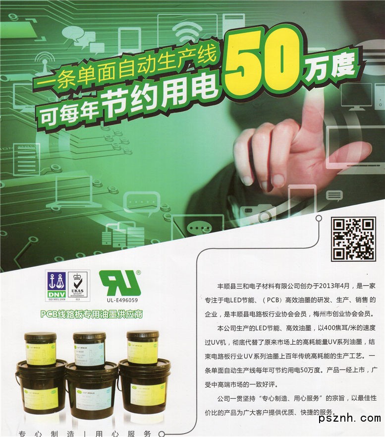 豐順縣三和電子材料有限公司 PCB油墨SH-6300 印制電路板 PCB油墨SH-(LED)8200點擊:991 查看原圖![]() ![]() ![]() 工廠地址:豐順縣湯坑鎮(zhèn)三門凹屋場村廣福樓
