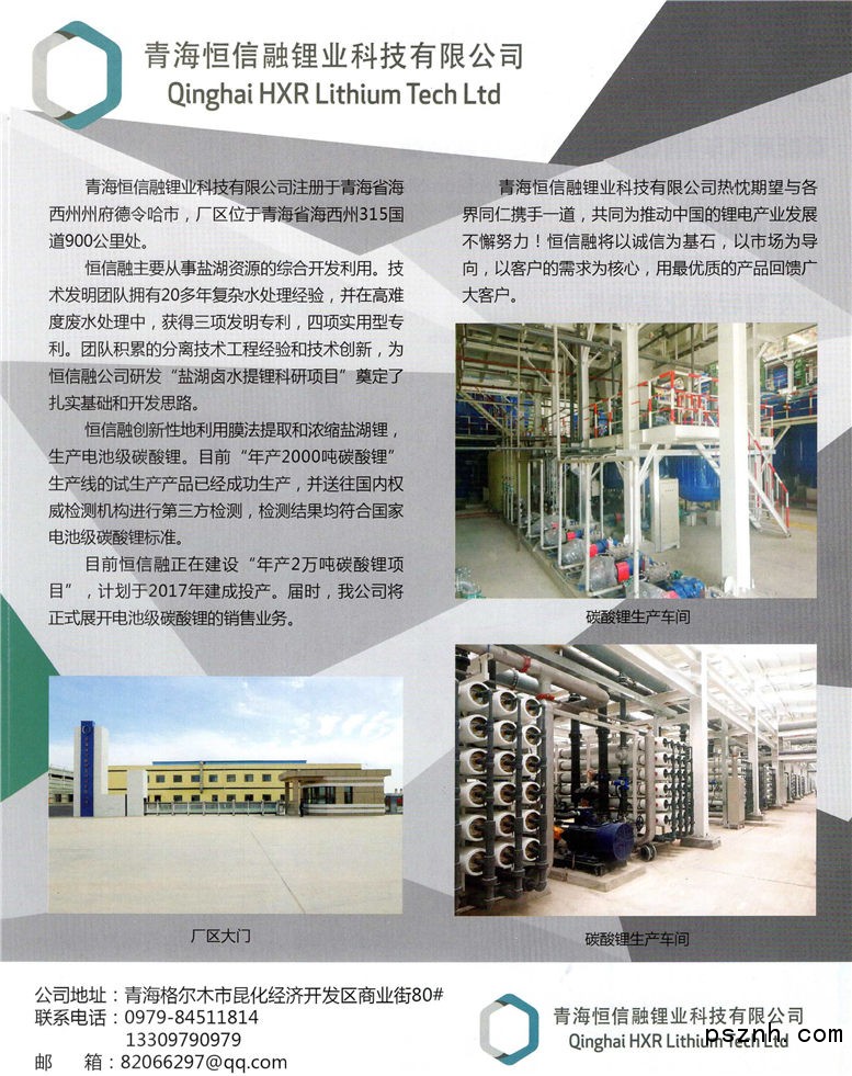 | 公司名稱: | 青海恒信融鋰業科技有限公司 | ||