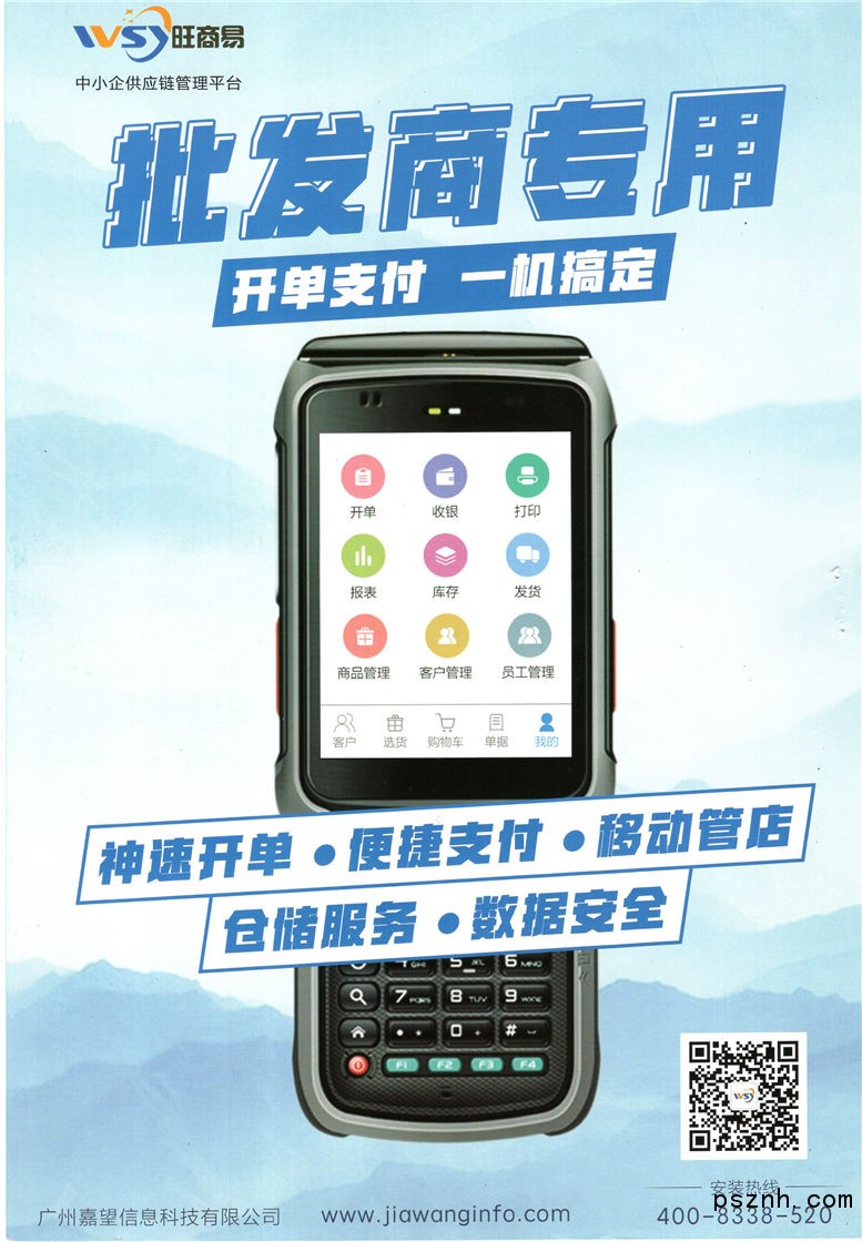 廣州嘉望信息科技有限公司 旺商易PDA開單一體機_線上線下全網支付結算_專業智能倉儲配送服務點擊:445 查看原圖![]() ![]() ![]() 客服1: 2594826231 服務熱線: 400-8338-520
