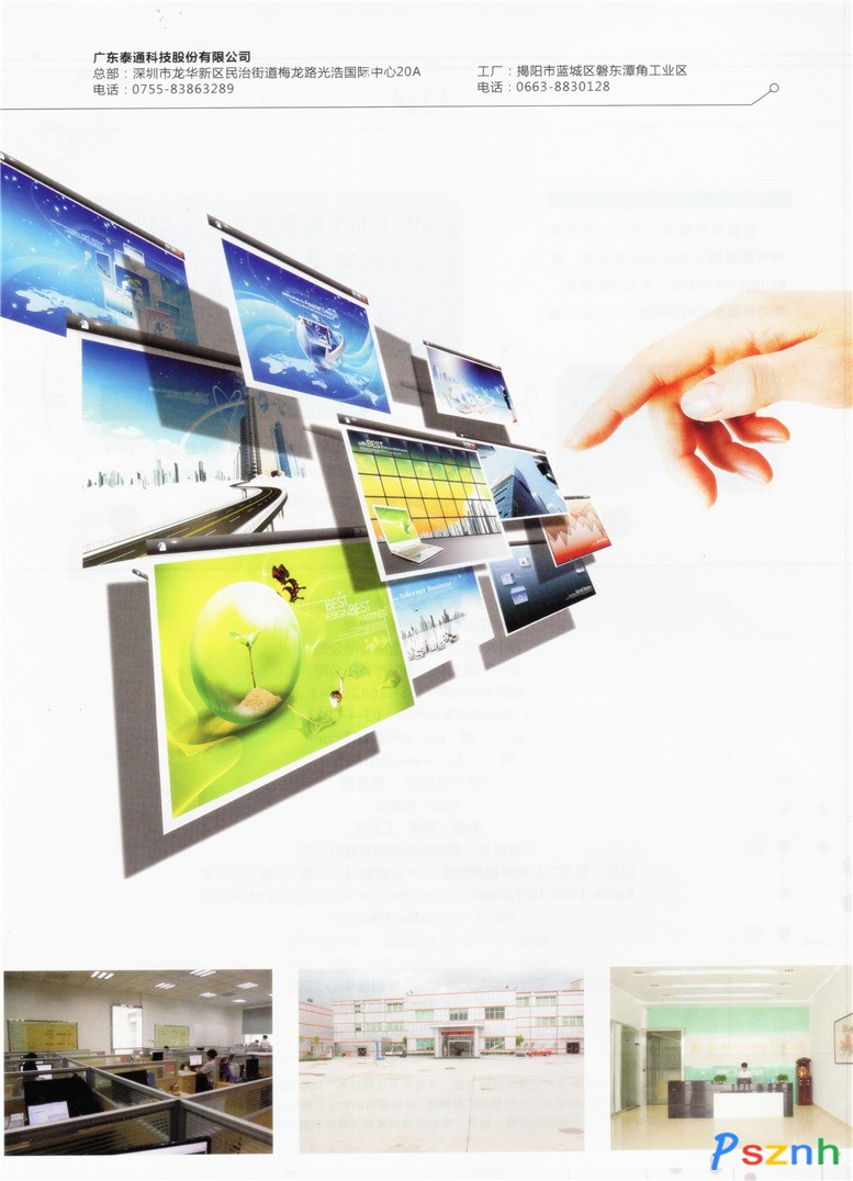 廣東泰通科技股份有限公司 膜(Film)結構投射式 電容觸控屏(CTP) 模組點擊:729 查看原圖![]() ![]() ![]() 廣東泰通科技股份有限公司