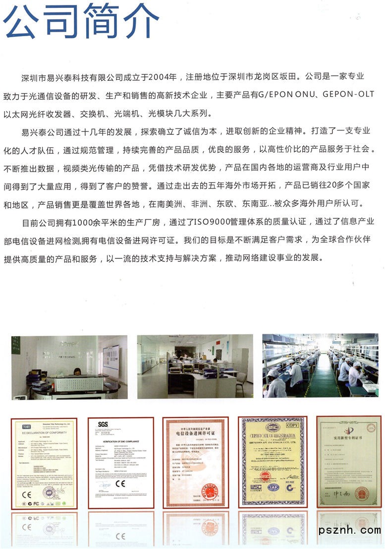 | 經營范圍: | 國內貿易;從事貨物、技術進出口業務。;光纖收發器、光模塊、光端機、電子產品的技術開發、生產與購銷。 | ||