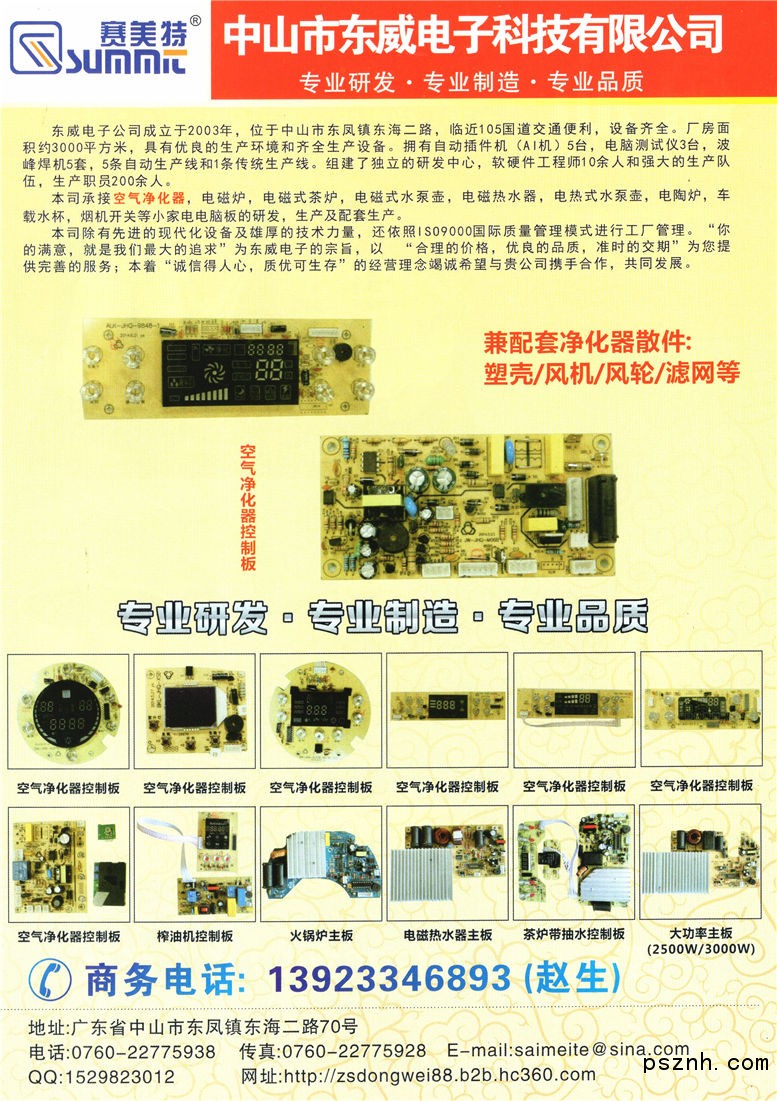 中山市東威電子科技有限公司 凈化器/新風(fēng)系統(tǒng),酸奶機/酵素機,電陶爐點擊:507 查看原圖![]() ![]() ![]() 聯(lián)系人 : 趙汝升 先生 (法人) 給我留言
