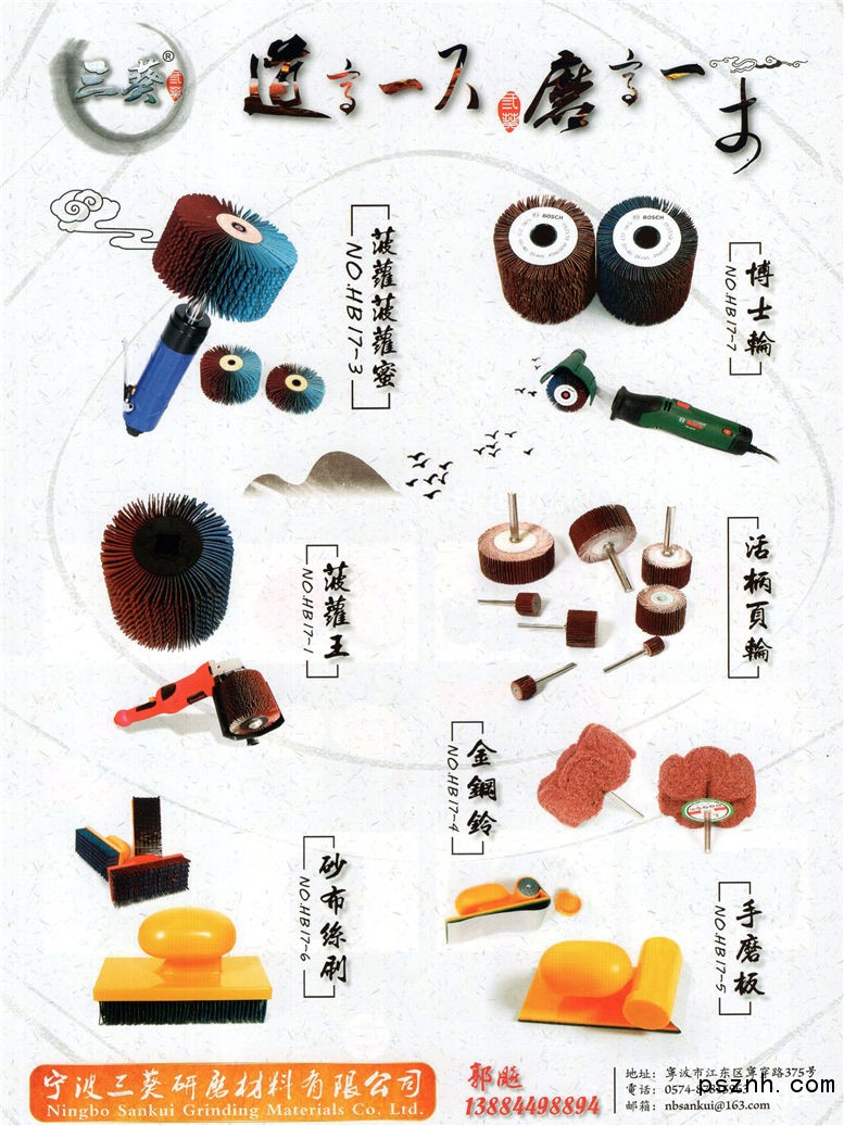 寧波三葵研磨材料有限公司 活柄葉輪_木工專業(yè)打磨磨具_不銹鋼打磨磨具點擊:969 查看原圖![]() ![]() ![]() 020-000-0000 020-000-0000