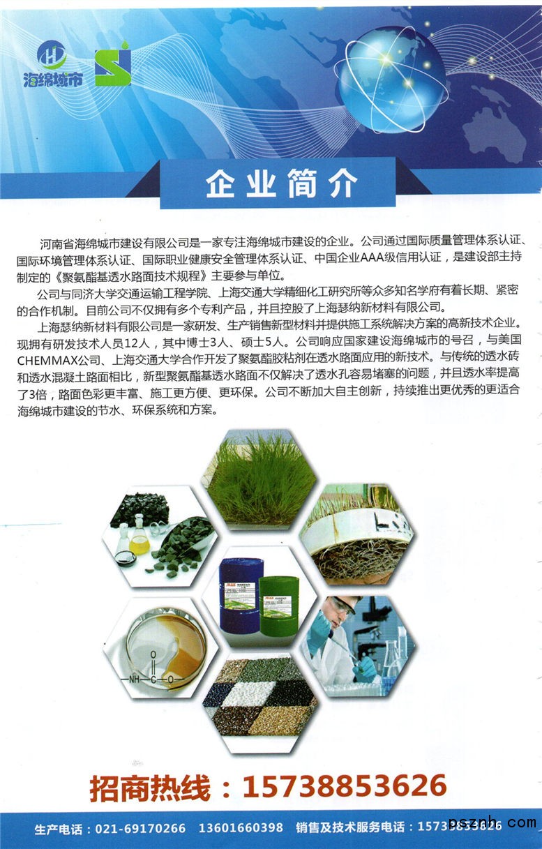 河南省海綿城市建設(shè)有限公司 聚氨酯膠結(jié)劑_聚氨酯基透水路面_聚氨酯透水磚點(diǎn)擊:289 查看原圖![]() ![]() ![]() 地址:鄭州市鄭東新區(qū)東風(fēng)南路商鼎路交叉口升龍廣場3號樓B座1814/1815/1816室