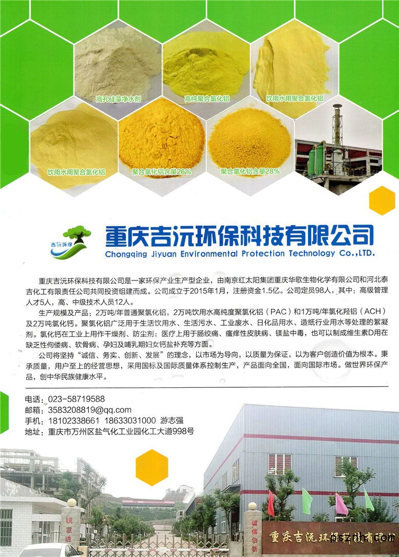 重慶吉沅環(huán)保科技有限公司 堿式聚合氯化鋁_高純聚合氯化鋁_聚合氯化鋁點擊:500 查看原圖![]() ![]() ![]() 重慶吉沅環(huán)??萍加邢薰?