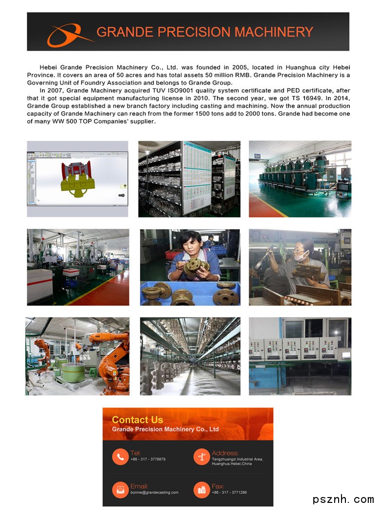 電話: +86-0317-5880988 傳真:+86-0317- 5880788 郵箱: tianwei@grandecasting.com 地址:河北省黃驊市滕莊子鄉工業園 郵編061100 網址: , www.grandecasting.com |