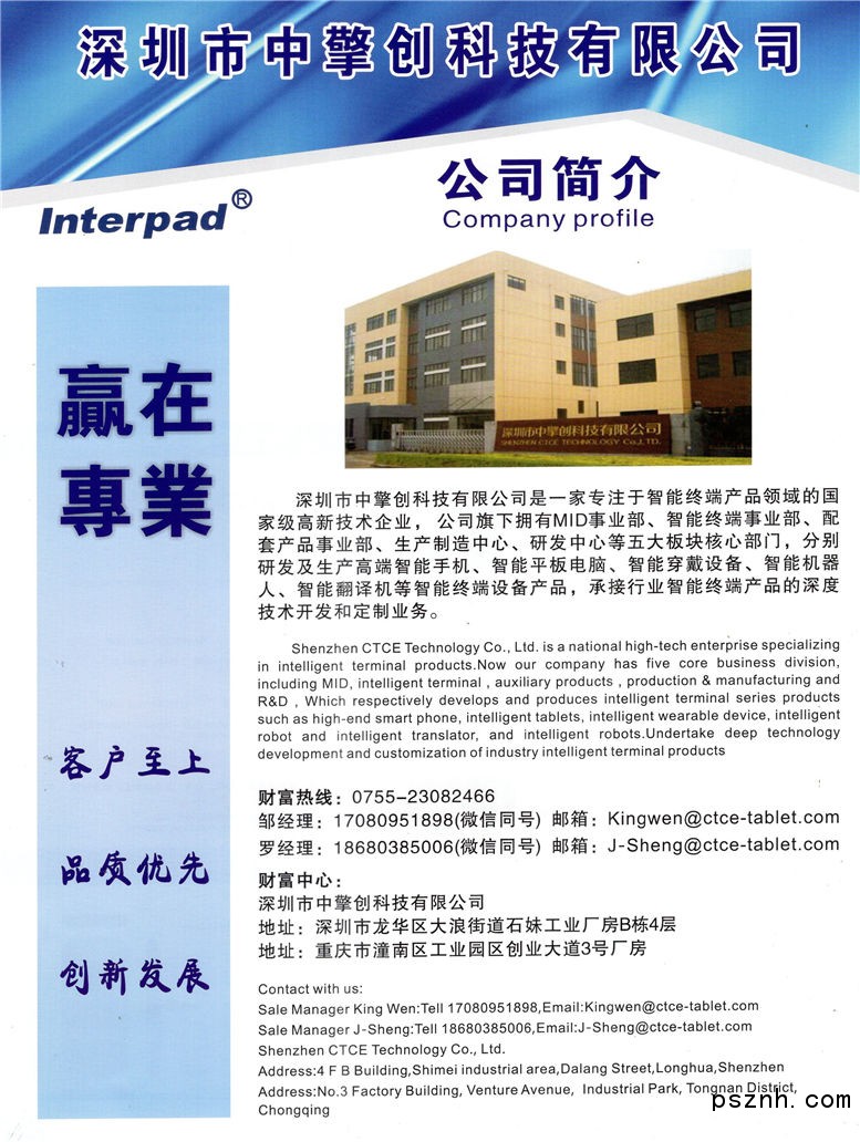 深圳市中擎創科技有限公司 平板電腦_智能設備_手表手機點擊:713 查看原圖![]() ![]() ![]() 公司名稱:深圳市中擎創科技有限公司
