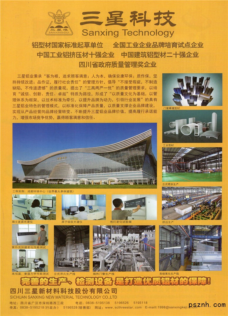 四川三星新材料科技股份有限公司 鋁制品_鋁材_鋁料點擊:572 查看原圖![]() ![]() ![]() 聯 系 人: 葉耀華 先生 (副總經理) 打電話給我時,請一定說明在華人螺絲網看到的,謝謝!