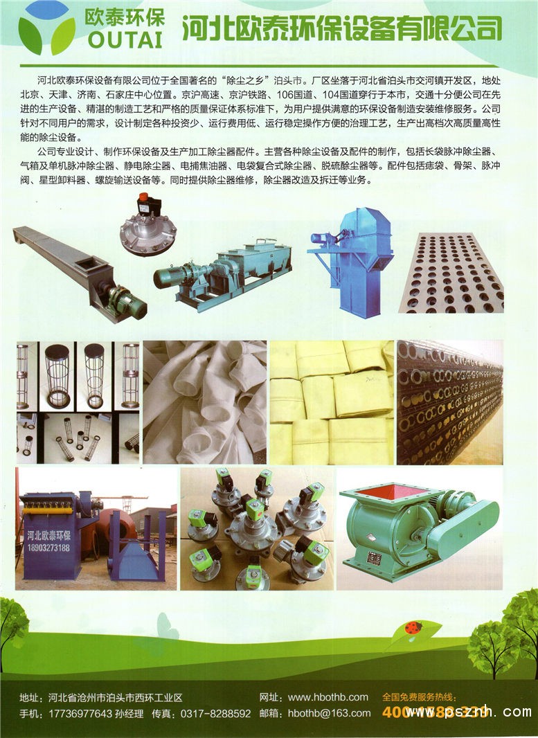 河北歐泰環保設備有限公司 除塵布袋 除塵骨架 布袋除塵器點擊:556 查看原圖![]() ![]() ![]() 公司傳真:0317-8288592