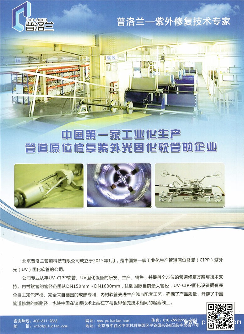 北京普洛蘭管道科技有限公司 CIPP軟管_UV-CIPP軟管固化機點擊:576 查看原圖![]() ![]() ![]() 北京普洛蘭管道科技有限公司
