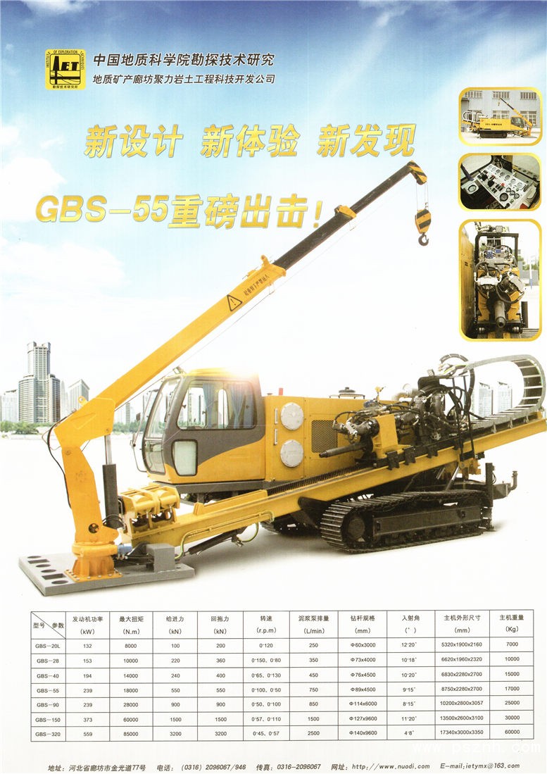 中國地質科學院勘探技術研究所 GBS系列非開挖鋪管鉆機_H系列氣動夯管錘_M系列氣動矛